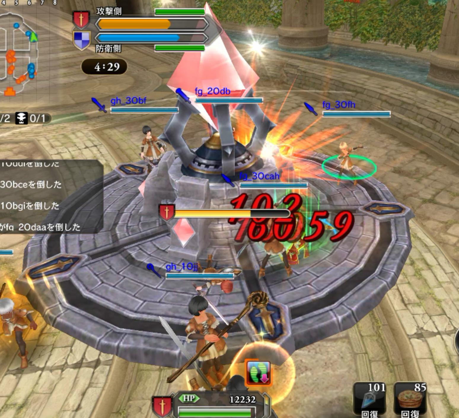 リングで課金ポーションが買えるし(正式版で買えなくなった!)、☆☆☆装備も買えるので貯めてみるのもいい。しかし溜まった頃には誰も居ないかもね。 (2018/8月時点の予想) 戦争がいっぱいだ!みんなやる気すげー ・・と思ったのだが様子がヘン。 みんなNPCだった。自軍は全部男 敵軍は全部女。そして勝手に戦ってる。 敵側のPCを発見!なんと1vs1の戦争だったwww FEZ名物、掘しさん達。 範囲魔法ウマー。 よいしょ。座ってると敵のクリを占拠できる。 さっきの掘しさん達が戻ってきて 攻撃してくるが、ダメージが弱すぎて 何の影響も無い。占拠継続中。 そしてまたサクサク倒されるNPC達。 さすがに片手だけは生き残ってバッシュされる。 クリ占拠を妨害できるのはバッシュだけみたい。 3桁キル余裕でした。 © ASOBIMO,Inc. © SQUARE ENIX CO., LTD. All Rights Reserved. |