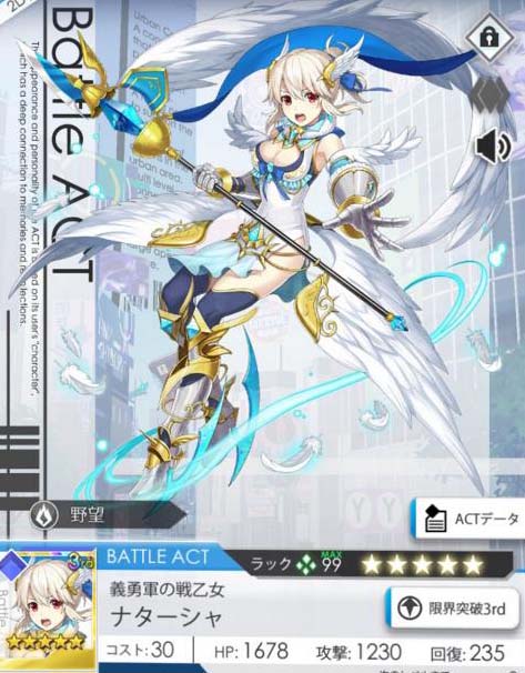 ・盟主・・一見強いが、ガドブレで終る。 現時点でのFEGの評価(グーグル)。ここまで低い点数は滅多に見ない。 初日の通信エラーが酷すぎた。 ほとんどの人はここで激怒してやめたと思う。 初日が全てということがよくわかる好例。 あとで改善してもこの点数では、 新規がやるはずが無い。 レイドボス・ナターシャ攻略 かなり優秀。前回のドクターキッティーとは大違い。 しかし!10日ごとにレイドをやるせいで 時間が無い。帰宅したのが8時で、もう 終わってるかと思ってたがまだ進行中。 焦らずナターシャの攻撃力を確認。 「1230だと!?絶対3凸しなくては!」 ・・と頑張ってみたものの、さすがに 困難を極めた。失敗したらコンティニュー、 スタミナ回復のクリスタルも惜しまず強行プレイ。 しかし。3垢のうちひとつは熾烈で 諦めるほかなくなってしまった。 1垢 4位 24時間以内で終了 2垢 7位 18時間以内 3垢 11位 12時間程度 で、何故か次は30日後になっていた。 連続で10日ごとのレイド。これは何だったんだ。 (C)BANDAI NAMCO Entertainment Inc.