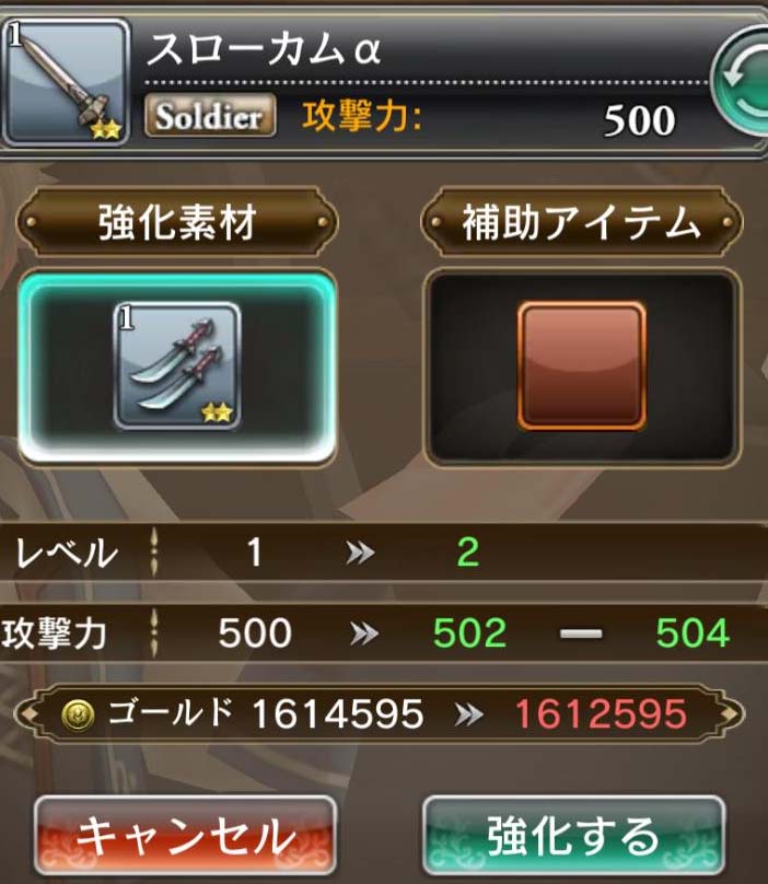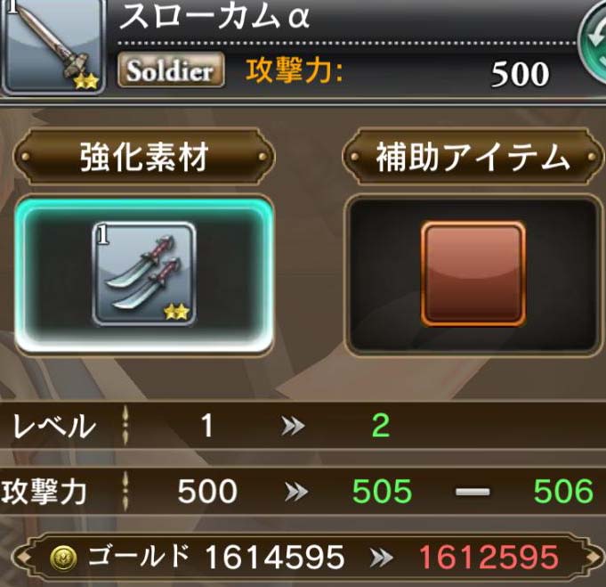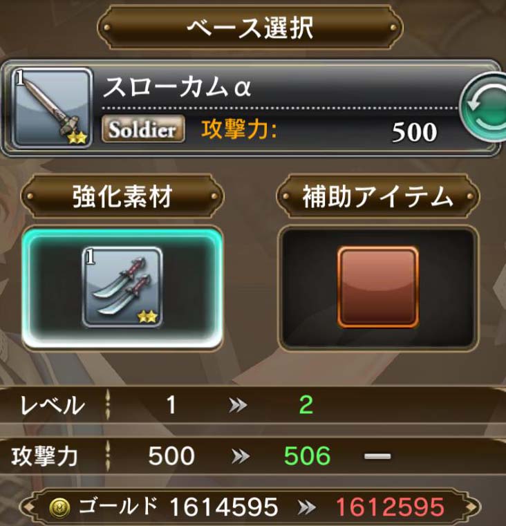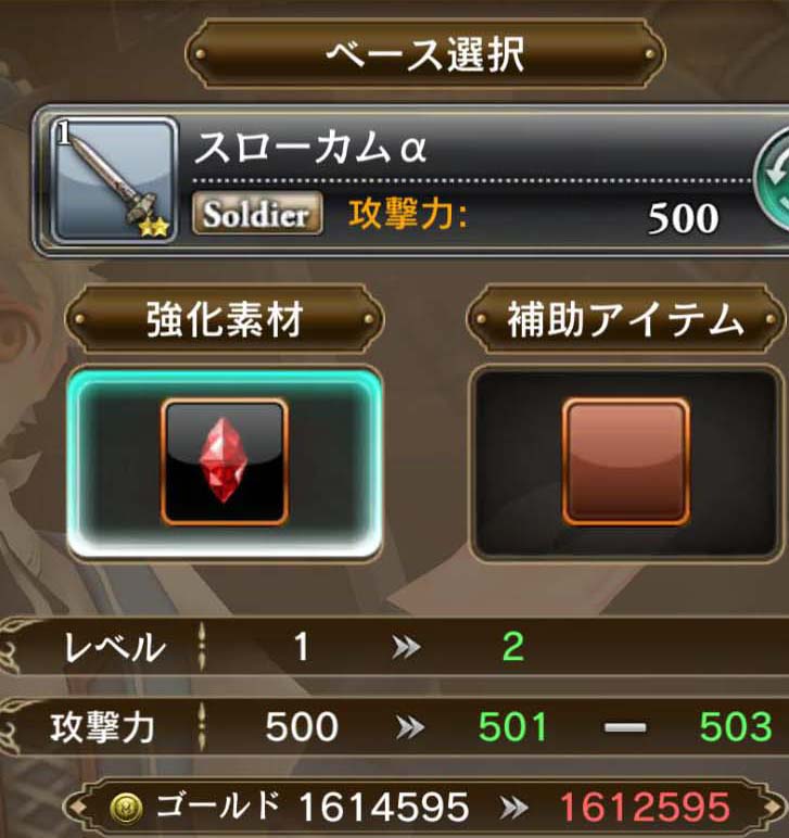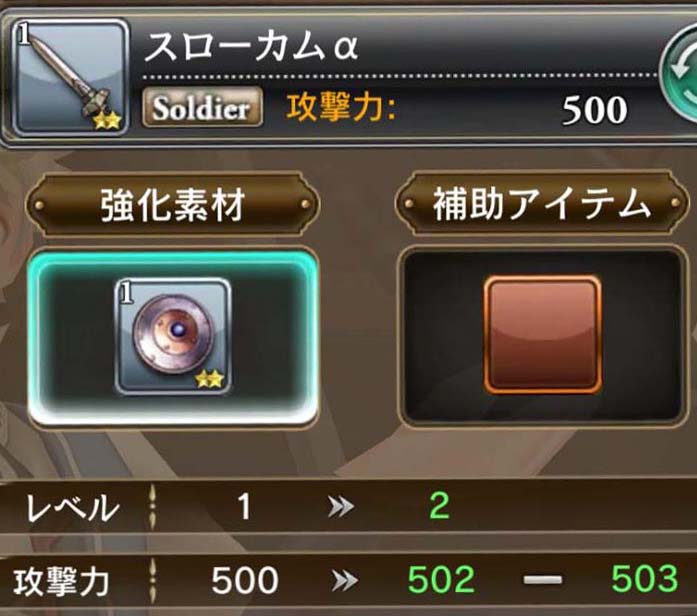 ・ガチャで☆☆☆☆を当てたとしても弱い。レベルアップ、限界突破、スロットによる強化が待っている。