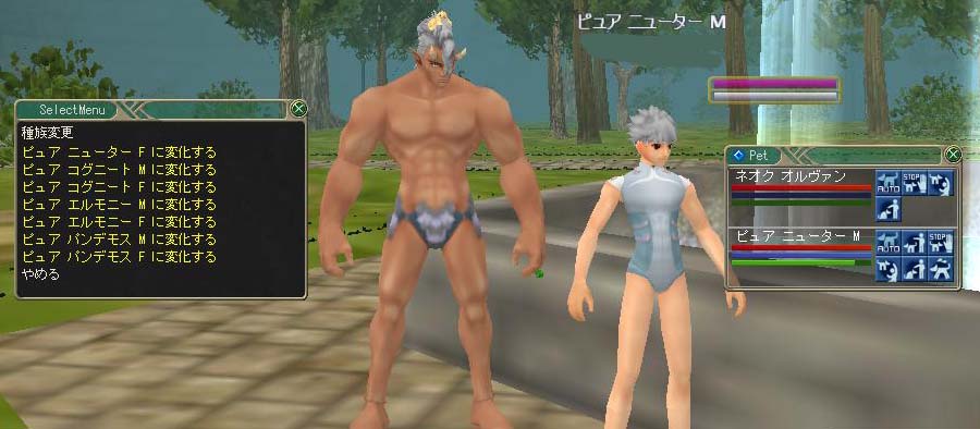 戦闘用 ・サムライ・・金策用 ・テイマー・・ペットとウフフ用 ・弓・・対人だと全然当たらない。お蔵入り ・死魔・・パニ用。飽きたのでお蔵入り ・メイジ・・対人用だけど役に立ったことは無い ・召還・・WGK用。お蔵入り ・棍棒・・地震(謎) ・物まね・・ネイチャーでお散歩用。 生産用 ・釣り・・刺身オンライン用。資金のほとんどはコイツが稼いだ ・採掘・・自分用武器製造 ・裁縫・・ほーたいを作るだけ ・美容・・ハエ取り専用 ・罠・・毒薬作成用。お蔵入り ・調合・・GHP用。お蔵入り その他 ・露店用・・めんどくさい。使ってない ・リザ用・・要所要所にリザ薬を持った旅人を配置 窓に立ち 何を想う ピュアにゅたこ 家ageを見たら「ノアクリスタル オブ キガ エールA」がたったの100K! 早速与えたらドレス衣装になりました。 キガエールは2010年からあるのですが、2012年の記事でさえ7Mとあるので なんという価格破壊。 まあ、みんな一度はこういうことやりますよね? ピュアニューターの詳細。ラーニングクリスタルの BとC(どちらも10K~20Kぐらい)を購入。Aはとんでもなく高いので無理。 Bはチャージドフィスト、Cはレッグストーム。 次回は戦わせて見ますね。 ©Willoo Entertainment Inc. ©Konami Digital Entertainment さて、復帰して思ったこと。