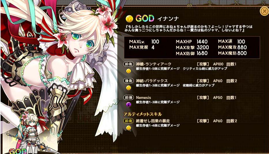 イナンナ。課金ガチャGODだけど、スキル見てびっくり。5体に究極、 後衛からも究極。究極即死祭り。 サービス開始早々壊れカード出すのやめたほうがいいよ。過疎るから。 さて、気を取り直して「攻撃力と与ダメの関係」を検証しました。 攻撃力2万、mobはギルド5階 本体 6501-6619-6185=平均6435 雑魚 5603-6228-5715-6323-5775-6274=平均5986 攻撃力1万、mobはギルド5階 本体-2047-2039-2156=平均2080