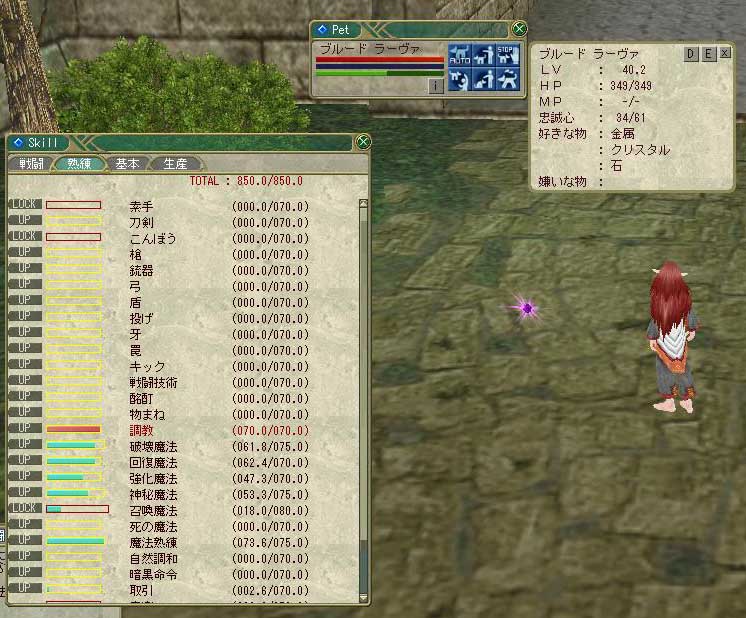 蜘蛛→ゾンビラット→レイス。 その後はネオク高原のワームでスパルタが安全です。 さて。私はウー育成にミーリムや丘は使わないほうがいいと思います。 めったにないことですが、めったにないからこそ危険とも言えます。 デッドロストするペットの育成はドキドキものです。 ではまた! 朗報です。現在、ブルードラーヴァという進化ペットの ウーをまったり育成するには「ミラクルゲイジ」というスキルが必須です。 少々誤算があったので追記。